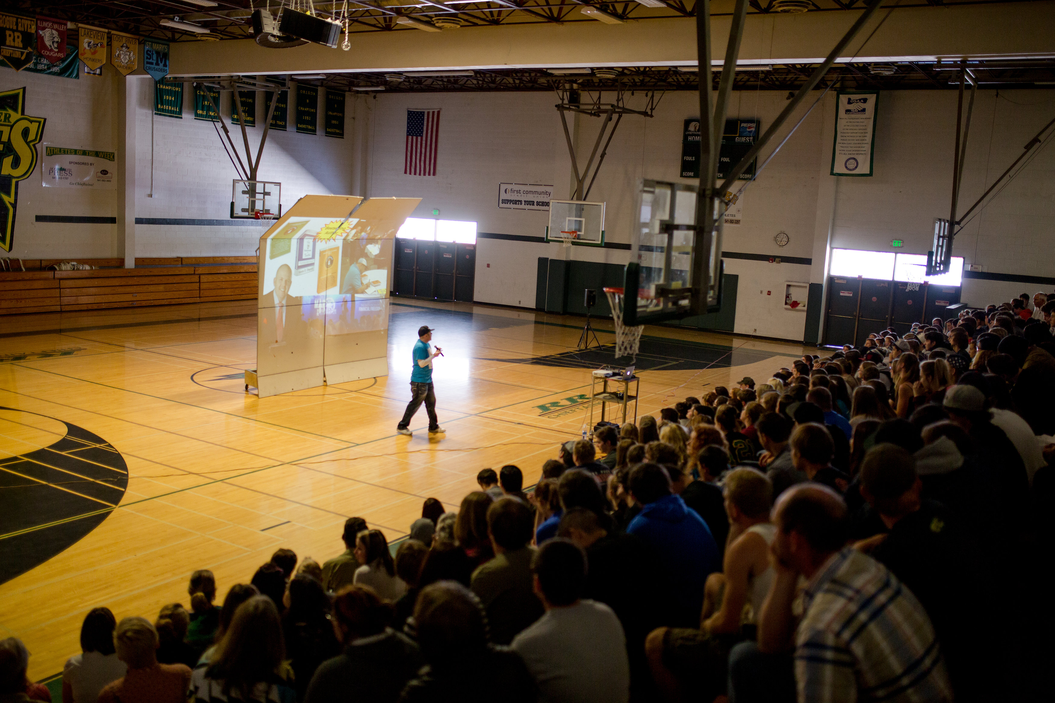 Kevin was able to engage roughly 500 middle school students — finding the critical balance between being fun enough to hold attention while delivering a powerful message. The effect of his presentation was immediately visible in our students.